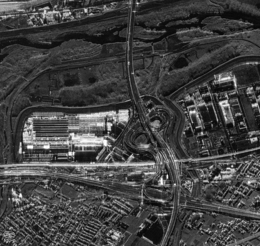 SARの特性を活かすことで、ランプ、立体交差、車線分岐といった複雑なインターチェンジ構造を明瞭に捉えることができます。ここでは、東西に名神高速、南北に京滋バイパスおよび京都縦貫道が交わる大山崎インターチェンジの途中で東海道新幹線の高架をまたぎ、一部はその高架の下をくぐるという複雑な構造をご覧いただけます。レーダー反射の違いにより道路形状や高低差が可視化され、天候や昼夜を問わず安定したインフラ把握が可能です。
