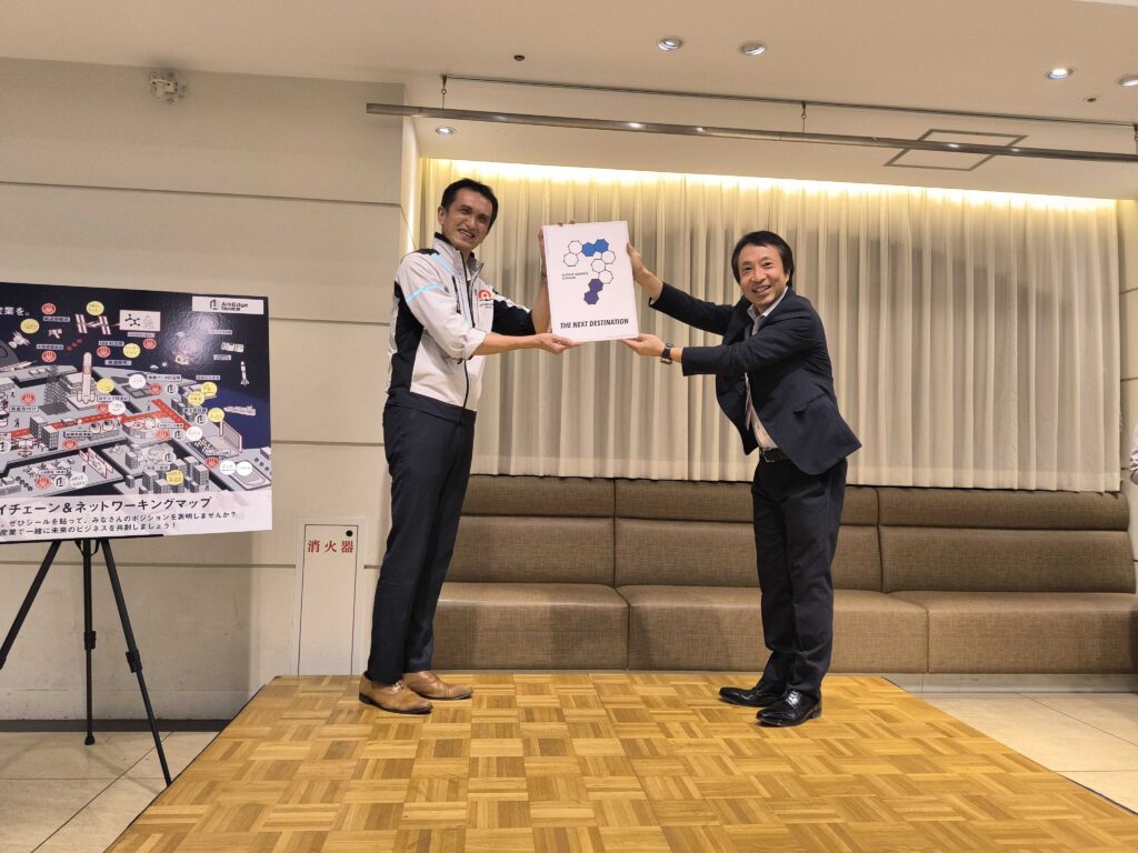 フォーラム後は参加者の熱冷めやらぬまま、会場を鹿児島県の老舗百貨店 山形屋に移し、MeetUpが行われました。参加希望者多数のため、満員御礼となったMeetUpでは、聴講者・登壇者・運営スタッフ・スポンサー、それぞれ宇宙産業への想いを携えた皆さまがフランクにご歓談を楽しまれていました。懇親会場が賑わいを見せる中、次回2026年九州宇宙ビジネスキャラバンの開催都市候補の発表もありました。