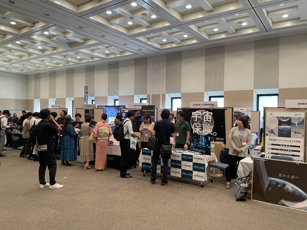 フォーラム会場と同じフロアにある大ホールでは、エキシビションが催されており、トータル21のブース展示及び各県等ポスターセッションが行われました。「九州宇宙ビジネスキャラバン」の名のとおり、主として鹿児島県内企業・組織及び協賛社などが、各ブースでイベント参加者との宇宙ビジネスのマッチアップに花を咲かせておりました。