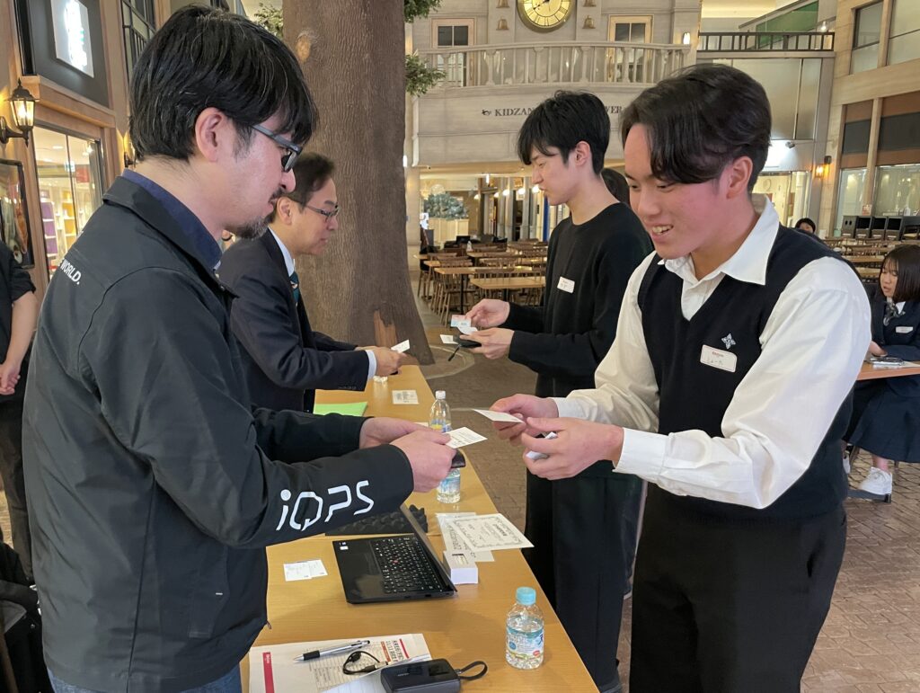 さらに学生の皆さまには、本コース修了の「参加証明証」とキャンパスネームが入った名刺が配られました。名刺には各個人に付与されたキャンパスIDも記載されており、次回コスモポリタンキャンパスの別コースに参加する際には同じIDで参加可能とのこと。さっそく、名刺を手にした学生の皆さまによる名刺交換がスタートし、チーム内外とどまらず会場は名刺交換のネットワーキングの場となりました。