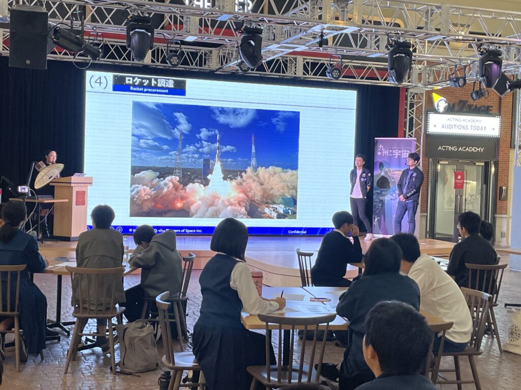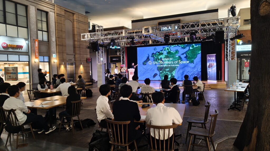 さらに、QPS研究所を取り巻く環境はまさに「世界屈指の九州の宇宙エコシステム」であると大西は述べ、宇宙専門ではない様々な企業の技術がここ九州で宇宙に携わっている現状を踏まえ、学生の皆さまにも興味があれば是非宇宙産業で活躍してほしいとお伝えしました。