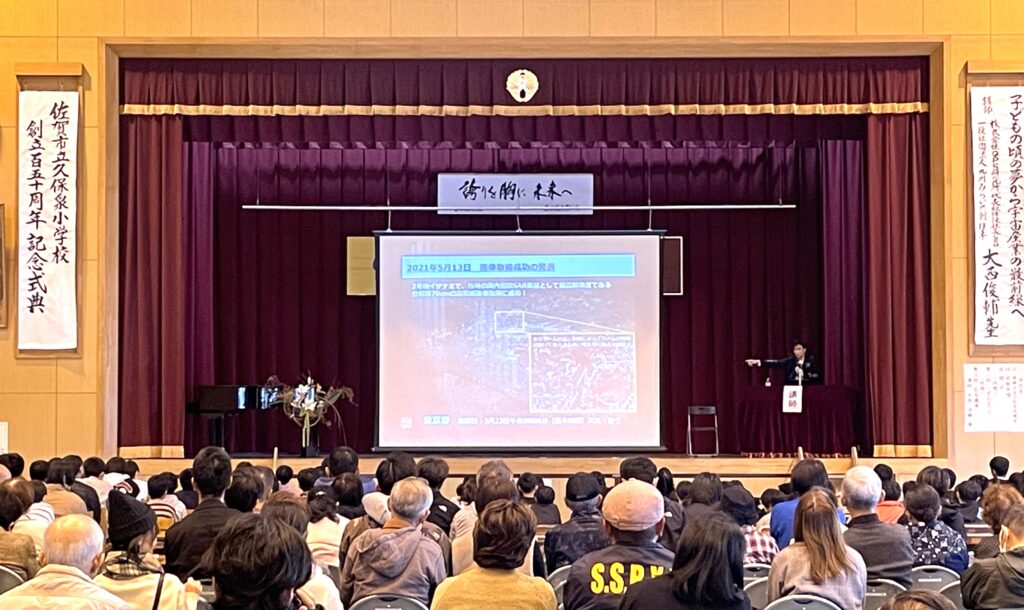 11月16日、日曜日。佐賀県にある佐賀市立久保泉小学校(以下:久保泉小)で創立150周年記念行事が行われました。明治時代に創立した2つの小学校が1つになって誕生した久保泉小は今年150周年の節目を迎えました。明治から令和と数多くの児童を見守ってきた久保泉小。QPS研究所 代表取締役社長 CEO 大西俊輔(以下:大西)も、この歴史ある学び舎で小学生時代を過ごした一人です。この度、大西は卒業生として記念講演のお声掛けをいただき、児童並びに参観者の皆さまの前でお話をさせていただく機会を頂戴いたしました。記念行事当日の様子を一部ご紹介いたします。